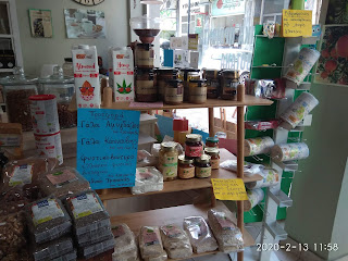 Στο κατάστημα μου θα βρείτε: Αγνό Ελληνικό Μελι, Ξηρούς Καρπούς, Αποξηραμένα Φρούτα, Φυστικοβουτυρο, Ταχίνι, Πετιμέζι, Αλάτι Μεσολογγιου, Παραδοσιακούς Τραχανάδες, Όσπρια Πρεσπών, Αλεύρι Dinkel, Ζυμαρικά Dinklage και δικοκκου σταριού, Φυσικούς Χυμούς Ιπποφαές, Κρανμπερυ, Ρόδι, Aloe Vera, Βρώμη, Γάλα Αμυγδάλου, Ρυζογκοφρετες, Γάλα Κάνναβης, Λινελαιο, Λιναρόσπορο, Σπόροι Chia, Κινοα Νιφάδες, Μαρμελάδες και Κομπόστες χωρίς ζάχαρη, Σάλτσες, Κρόκο Κοζάνης, Σιρόπι Σφενδαμου, Ζάχαρη καρύδας, Μαύρη Σταφίδα Κορίνθου, Κανελα Κευλανης, Κούρκουλα, Τζίντζερ, Μείγματα Μπαχαρικών, Πάπρικα, Χαμομήλι και Τσάι Πηλίου, Ορεινή Ρίγανη Καρδίτσας, Αμύγδαλα και Καρύδια Ελασσονας. Παιδικο Τραχανά με κατσικίσιο γάλα, μπισκοτάκια, γλειφιτζούρια με φυσική γεύση φρούτων χωρίς συντηρητικά και χρωστικές, Βότανα, Βαμματα, Φυτικά Έλαια, Κεραλοιφες, Σαπούνια και Τσάι Κάνναβης.