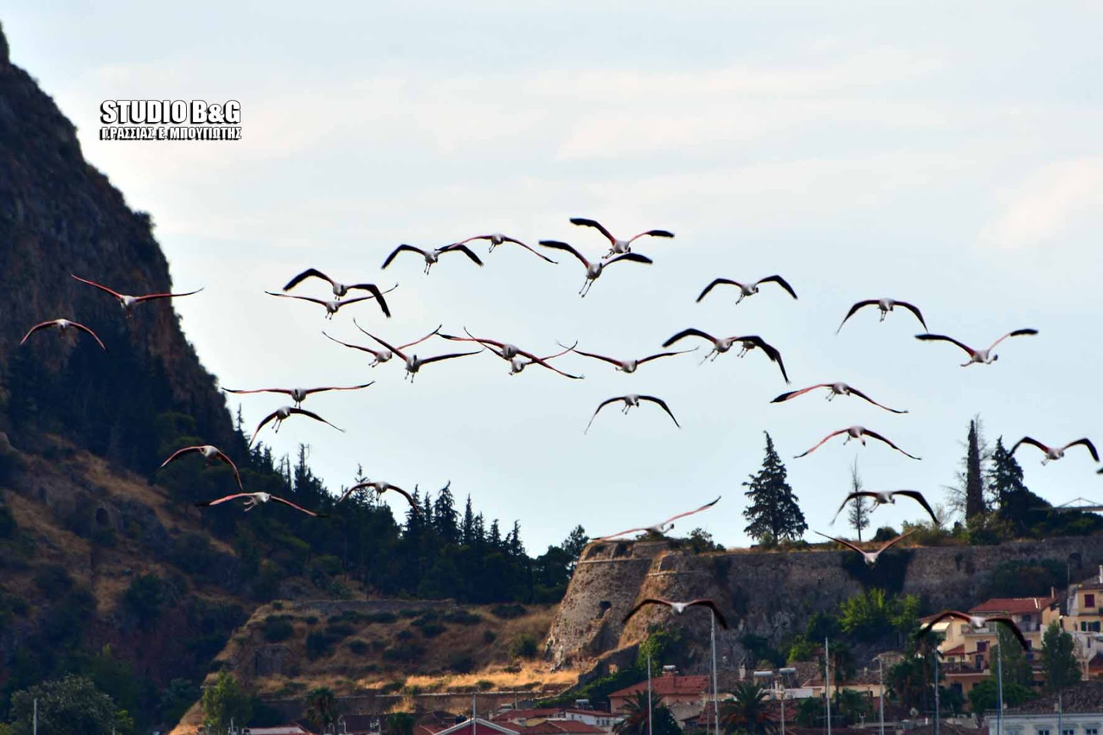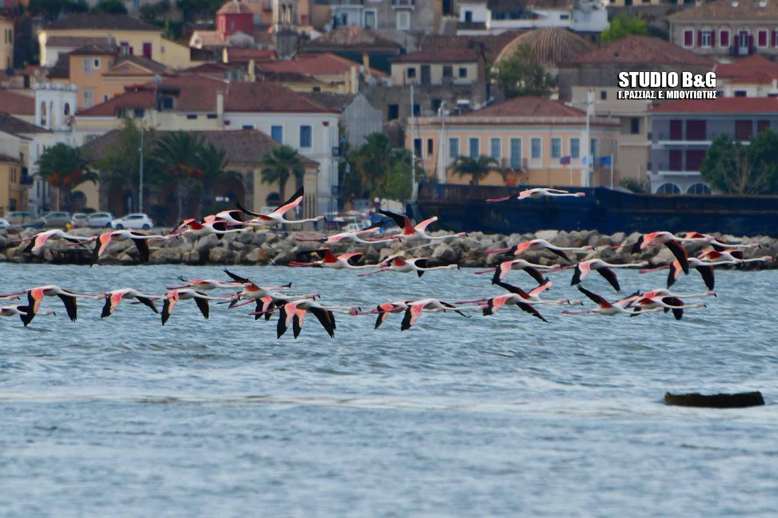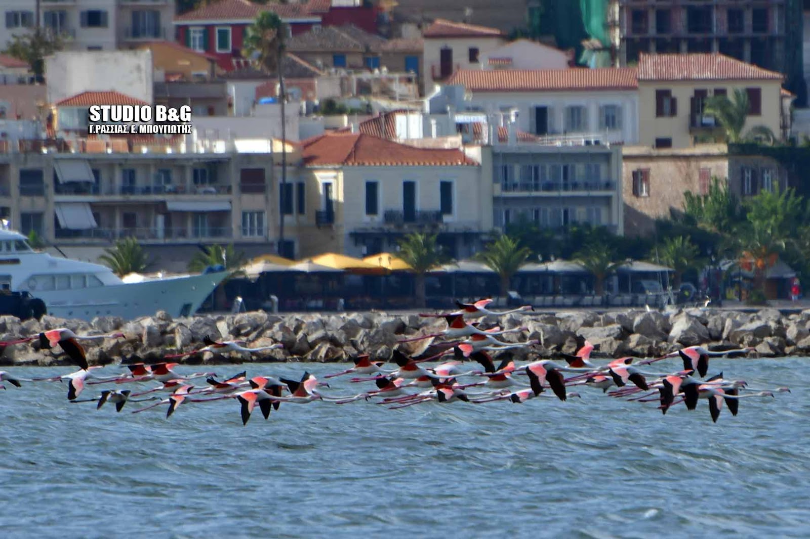 Έκρυψαν το Μπούρτζι δεκάδες φλαμίνγκο που κατέφθασαν στο Ναύπλιο
