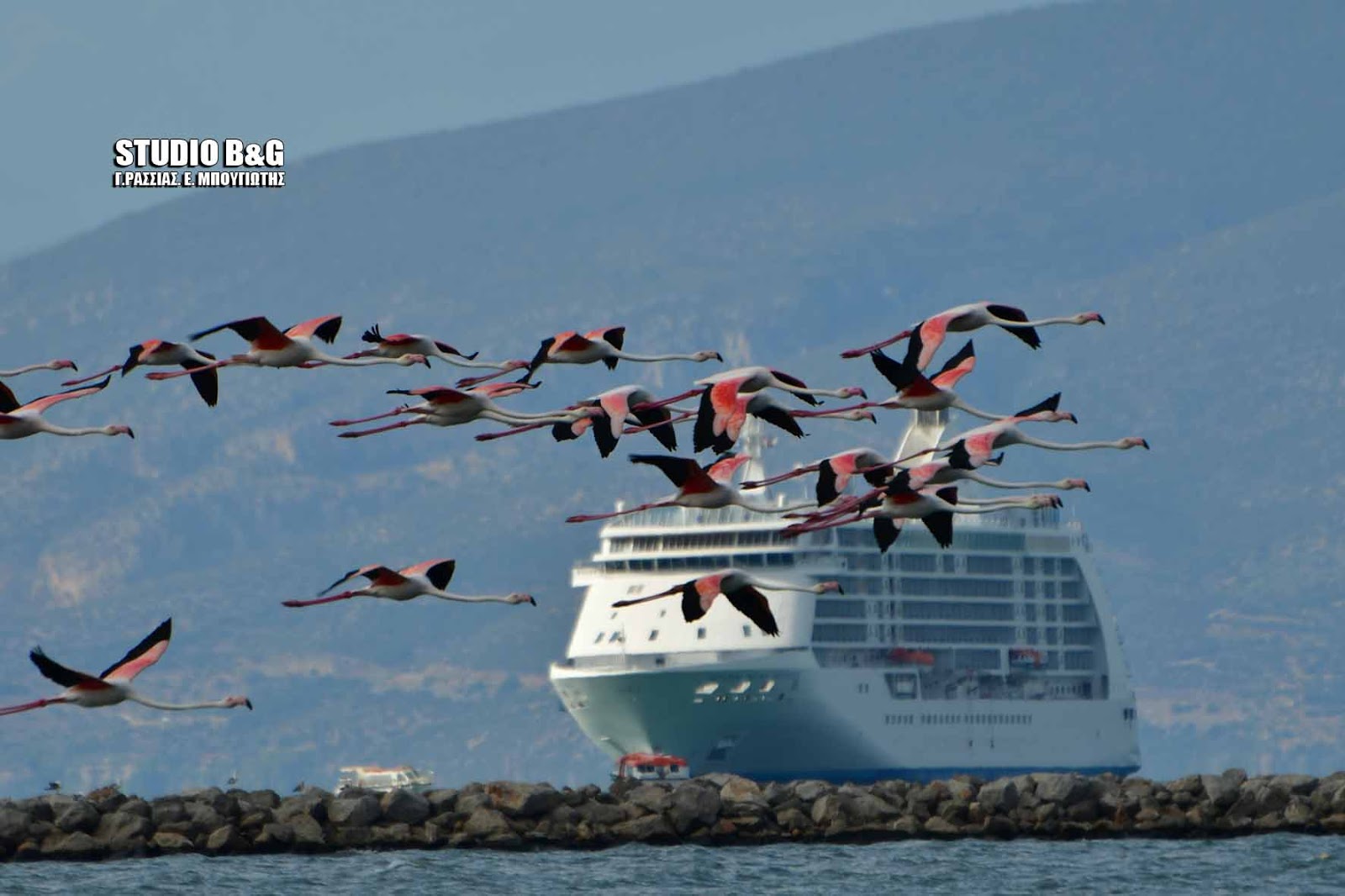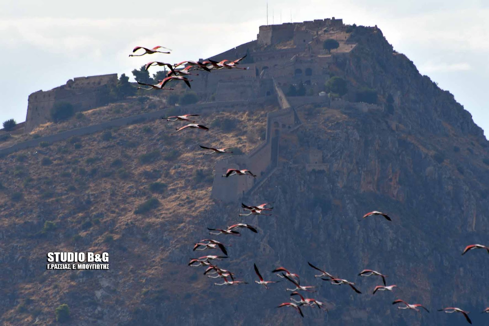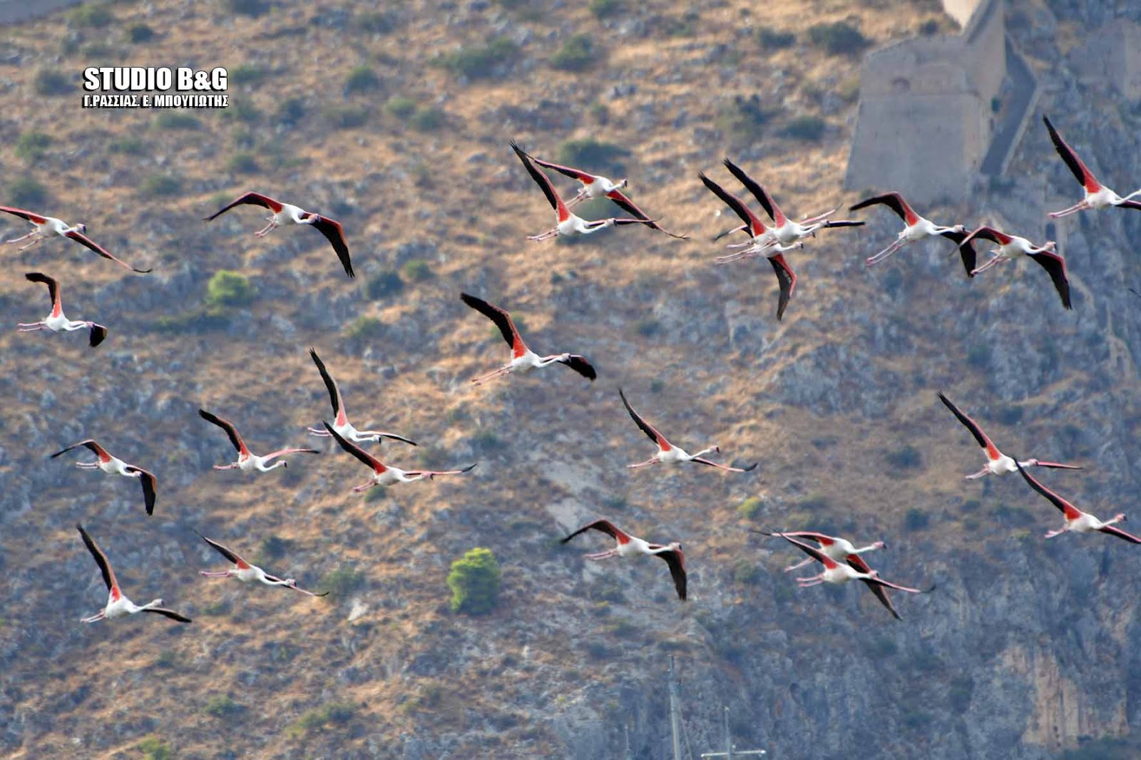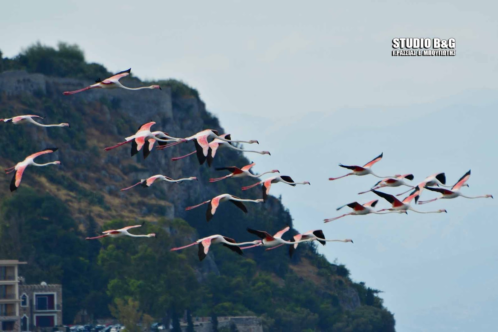Έκρυψαν το Μπούρτζι δεκάδες φλαμίνγκο που κατέφθασαν στο Ναύπλιο