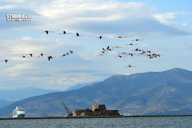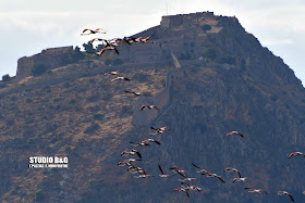 Ένα μεγάλο κοπάδι με περισσότερα από πενήντα φλαμίνγκο έκαναν την εμφάνιση τους το πρωί της Παρασκευής 13 Σεπτεμβρίου 2019 στο Ναύπλιο.
