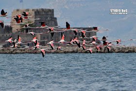 Τα φοινικόπτερα ή κοινός φλαμίνγκο συνεχίζουν να καταφθάνουν κάνοντας στάση στον υδροβιότοπο του Ναυπλίου προσελκύοντας τα βλέμματα ντόπιων και επισκεπτών.