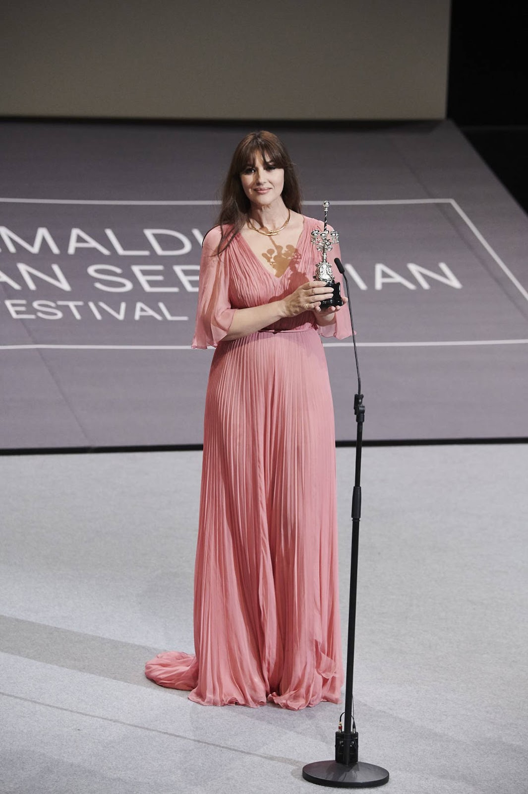 Η Monica Bellucci με την στυλιστική της επιλογή άφησε άφωνους τους πάντες. Η ηθοποιός πήρε το βραβείο Donostia Award στο San Sebastián Film Festival και εντυπωσίασε τους παρευρισκόμενους στην εκδήλωση με την υπέρκομψη τουαλέτα της και τις τέλειες αναλογίες της. Η Monica επέλεξε μία δημιουργία στις αποχρώσεις του σάπιου μήλου, που είναι στη μόδα και έκανε τους πάντες να μιλούν για την εμφάνισή της! Μπράβο στην ηθοποιό.
