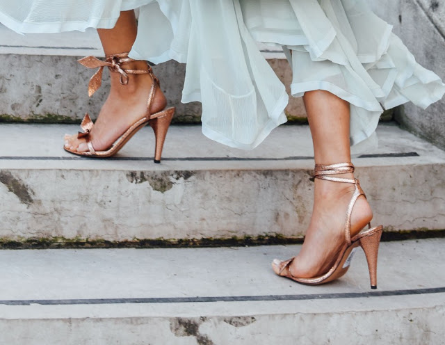 Metallics. Ταιριάζουν με λευκό, με μοβ, με κόκκινο αλλά και μπλε. Απλώς φροντίστε τα υπόλοιπα αξεσουάρ να είναι πιο μίνιμαλ – ένα ζευγάρι μεταλλιζέ παπούτσια αρκεί.
