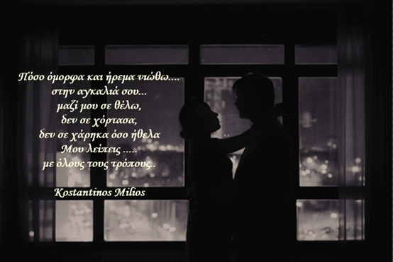 Μου λείπεις ….. by Ντέμη Ρούσσα 12 Αυγούστου 2018 Share: 0 Facebook 0 Twitter 0 Pinterest Πόσο όμορφα και ήρεμα νιώθω….στην αγκαλιά σου…μαζί μου σε θέλω,δεν σε χόρτασα,δεν σε χάρηκα όσο ήθελαΜου λείπεις …..με όλους τους τρόπους.. Kostantinos Milios 0 Facebook 0 Twitter 0 Pinterest Previous post Next post Ντέμη Ρούσσα administrator Leave a Reply Cancel replyΗ ηλ. διεύθυνση σας δεν δημοσιεύεται. Τα υποχρεωτικά πεδία σημειώνονται με * Αποθήκευσε το όνομά μου, email, και τον ιστότοπο μου σε αυτόν τον πλοηγό για την επόμενη φορά που θα σχολιάσω.