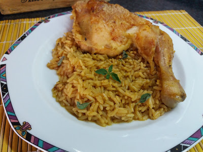 Κοτόπουλο στο φούρνο με κίτρινο ρύζι