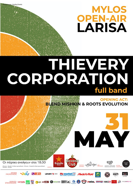 Μία από τις κορυφαίες live μπάντες του πλανήτη! Ένα συγκρότημα ταυτόσημο των sold out συναυλιών! Με live performances που πρέπει να βιώσει κανείς στη ζωή του! Ένα συγκρότημα που δημιουργεί νέα δεδομένα στη μουσική! Thievery Corporation…Ένα συγκρότημα που δεν χρειάζεται ιδιαίτερες συστάσεις. Στις 31 Μαϊου στο ανοιχτό προάυλιο του Μυλου του Παππά στη Λαρισα για μια βραδιά που θα συζητιέται για καιρό.