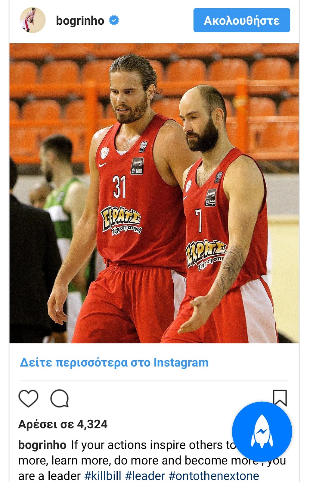 Τα καλύτερα έχει να πει για τον Βασίλη Σπανούλη, ο Γιώργος Μπόγρης που έκανε μία δημοσίευση στα social media αφιερωμένη στον “Kill Bill”!