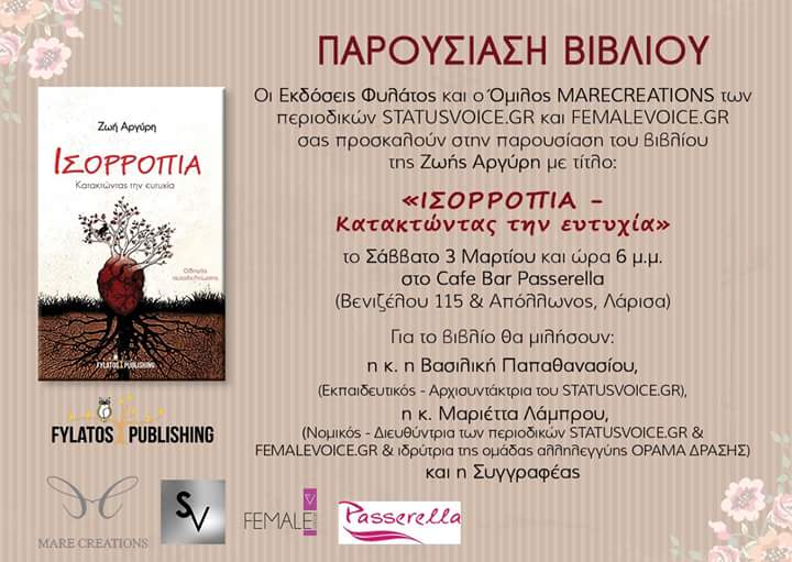 Παρουσιάση του βιβλίου Ισορροπία της Ζωής Αργύρη