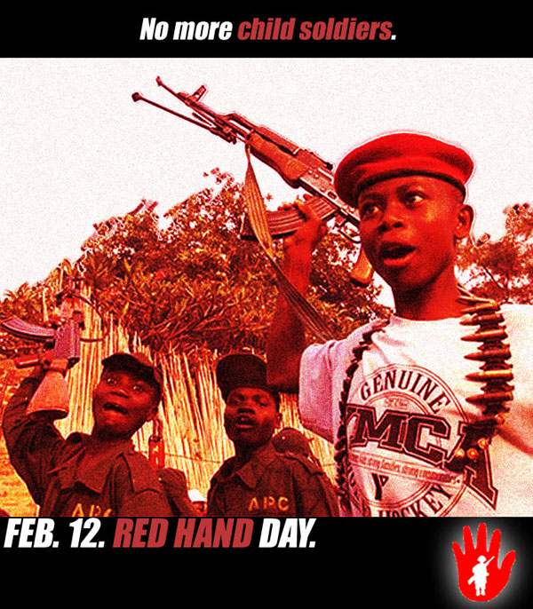 Ο «Συνασπισμός για τη μη χρησιμοποίηση Παιδιών ως Στρατιωτών», που εδρεύει στο Λονδίνο και έχει την πρωτοβουλία των εκδηλώσεων, περιλαμβάνει στους κόλπους του οργανώσεις, όπως η Διεθνής Αμνηστία και το Παρατηρητήριο των Δικαιωμάτων του Ανθρώπου (Human Right Watch) και συνεργάζεται με τη UNICEF, το Διεθνή Ερυθρό Σταυρό και τη Διεθνή Οργάνωση Εργασίας.