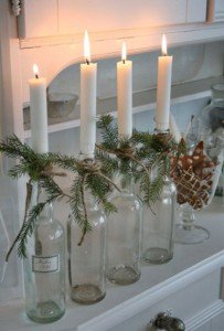 Τι μπορείς να φτιάξεις όμως μόνη σου; Τα πιο εκθαμβωτικά και εύκολα διακοσμητικά είναι τα κηροπήγια που μπορείς να δημιουργήσεις, από διάφορα βαζάκια, γυάλες ή ακόμη και μπουκάλια. Το μόνο που χρειάζεται είναι να τα διακοσμήσεις με κλαδάκια δέντρων, λουλούδια και κορδέλες.