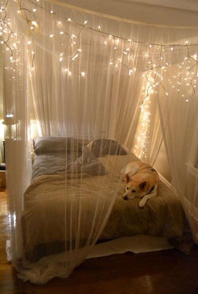 Βέβαια, αν δεν θέλεις να μπλέξεις με κουρτίνες και τούλια μπορείς πολύ απλά να περάσεις τα φωτάκια σου πίσω στοκεφαλάρι από το κρεβάτι σου, είτε κάθετα είτε οριζόντια.