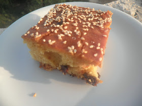 Στο αλεύρι έχουμε ανακατέψει το baking, το αλάτι και την κανέλα. Προσθέτουμε τα στεγνά υλικά στα υγρά και ανακατεύουμε καλά να ενσωματωθούν. Ρίχνουμε τις σταφίδες και τα καρύδια και αφού ανακατέψουμε αδειάζουμε σε λαδωμένο ταψάκι. Ψήνουμε σε προθερμασμένο στους 180 βαθμούς φούρνο. Μόλις ροδοκοκκινίσει η πίτα αν θέλουμε την περιχύνουμε όσο είναι καυτή με μέλι, ή μόλις κρυώσει την πασπαλίζουμε με άχνη και κανέλα!