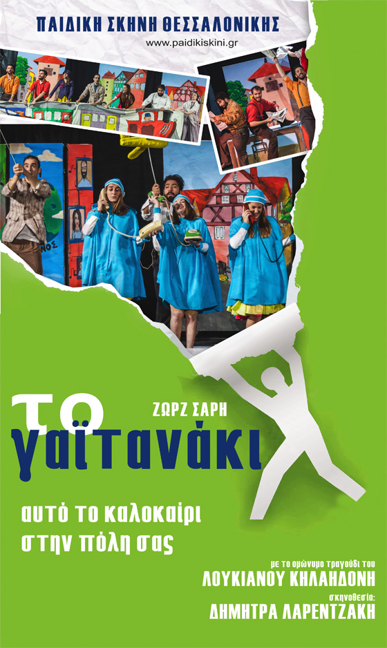 Η ΠΑΙΔΙΚΗ ΣΚΗΝΗ ΘΕΣΣΑΛΟΝΙΚΗΣ παρουσιάζει το μουσικοχορευτικό έργο της Ζωρζ Σαρή «ΤΟ ΓΑΪΤΑΝΑΚΙ» με το ομώνυμο τραγούδι του Λουκιανού Κηλαηδόνη. Ένα έργο που δίνει μηνύματα στα παιδιά για έναν κόσμο καλύτερο, με ειρήνη, δικαιοσύνη, ελπίδα και αγάπη για όλους, φωτίζοντας ξανά τα πρόσωπά τους με χαμόγελα! Λίγα λόγια για το έργο: Ο Κυρ –Νικόλας ζει ήσυχα παρέα με τα βιβλία του, μέχρι τη στιγμή που ένα τραγούδι γεννά μέσα του μια μεγάλη ιδέα. Όλα τα παιδιά της γης μια δεδομένη στιγμή να πιαστούν χέρι- χέρι και ν’ αγκαλιάσουν τη γη που είναι στρογγυλή. Παίρνει το χάπι της νεότητας από το γιατρό Ξανανιώνη και ξεκινά να μεταδώσει στον κόσμο την ιδέα του. Μια μεγάλη περιπέτεια αρχίζει… Θα καταφέρει να φτιάξει το Γαϊτανάκι της ειρήνης; Ένα μαγευτικό σκηνικό με 7 ηθοποιούς που χορεύουν, τραγουδούν και επικοινωνούν με τα παιδιά! Μια παράσταση με πολύ χιούμορ, γέλιο, συγκίνηση και ανατροπές. Μην τη χάσετε! Με εκτίμηση, Ιφιγένεια Μανώλα