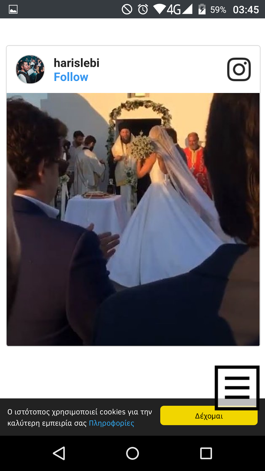 Δες την άφιξη της νύφης στην εκκλησία από το video που ανέβασε στο Instagram η φίλη του ζευγαριού Ελίνα Καντζά:
