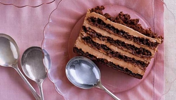 Επαναλαμβάνετε την ίδια διαδικασία με τις στρώσεις φροντίζοντας να τελειώνουν οι στρώσεις με τη σοκολατένια κρέμα τυριού. Θρυμματίζετε τα μπισκότα που δεν χρειάστηκε να “βρέξετε” στο καφέ και πασπαλίζετε την επιφάνεια. Βάλτε το γλυκό σας στο ψυγείο για 6 ώρες ή όλη τη νύχτα. Ξεφορμάρετε, κόβετε σε φέτες 2 εκ., σερβίρετε και το απολαμβάνετε με το πρωϊνό ή απογευματινό καφεδάκι σας.