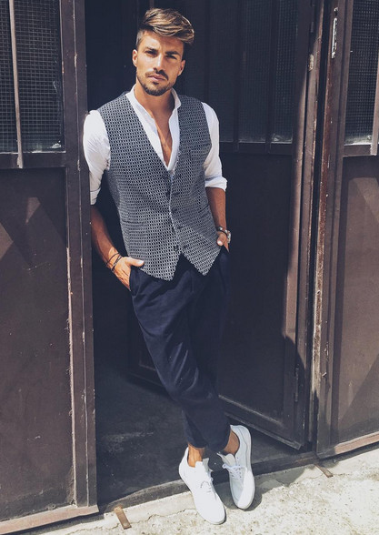 Είναι πάντα σκουρόχρωμο και πολλές φορές έχει κάθετες μικροσκοπικές ρίγες. Το γιλέκο γι’ αυτούς μέσα από το σακάκι δεν είναι θέμα κομψότητας, αλλά πιο πολύ θέμα δύναμης, ωριμότητας και αυτοπεποίθησης.