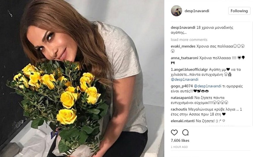 Το ερωτευμένο ζευγάρι γιόρτασε την σημερινή μέρα με την Δέσποινα Βανδή να ποζάρει με το δώρο του αγαπημένου της, που αυτό δεν είναι άλλο από ένα μπουκέτο με κατακίτρινα τριαντάφυλλα. «18 χρονια μοναδικής αγάπης…» έγραψε για λεζάντα κάτω από την φωτογραφία της στο Instagram η Δέσποινα Βανδή.