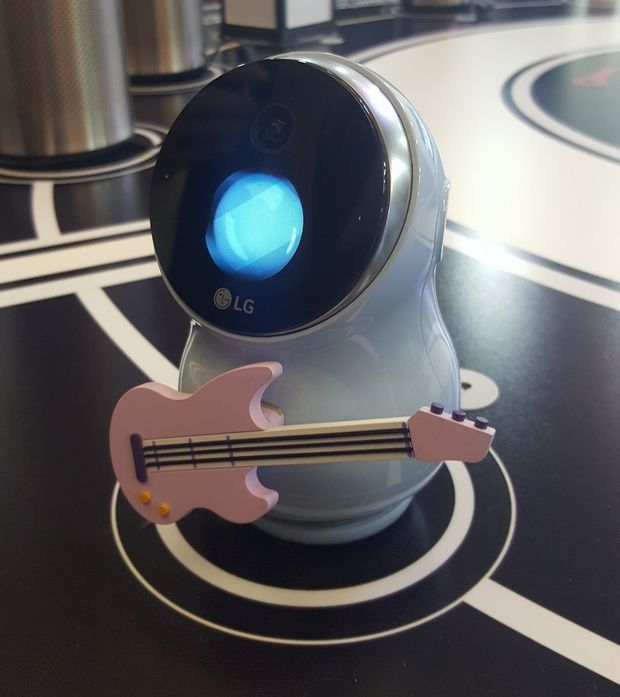 Το hub robot που σε ξεκουράζει Ποιος δεν θα ήθελε έναν ψηφιακό βοηθό στο σπίτι του; Το ρομπότ ολοκληρώνει τις δουλειές του σπιτιού χρησιμοποιώντας τεχνολογία αναγνώρισης φωνής συνδεόμενο με άλλες έξυπνες συσκευές LG του σπιτιού, έτσι ώστε μια απλή λεκτική εντολή όπως “Άναψε το κλιματιστικό” ή “Άλλαξε το πρόγραμμα του στεγνωτηρίου”. η συνδεδεμένη συσκευή εκτελεί αυτόματα τη ζητούμενη εργασία. Tο Hub Robot είναι επιπλέον, εξοπλισμένο με μια διαδραστική οθόνη στην οποία μπορεί να προβληθεί πληθώρα πληροφοριών όπως εικόνες από το περιεχόμενο του ψυγείου μέχρι και συνταγές με ηχητικές αλλά και σε μορφή βίντεο βήμα-βήμα οδηγίες. Θέλεις να παίζει μουσική;
