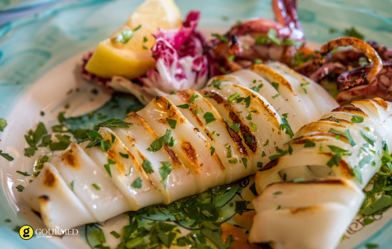 Ψητό καλαμάρι σχάρας με σως μουστάρδας