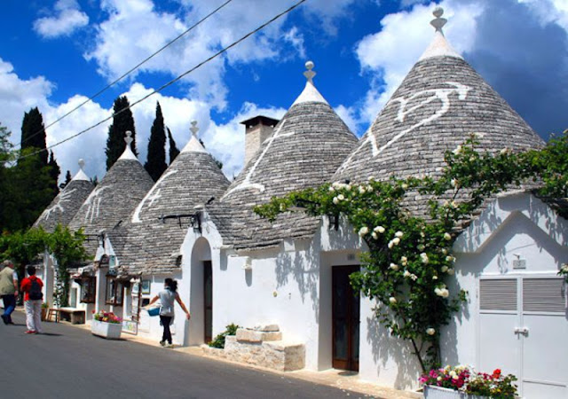 Και όχι άδικα. Χαρακτηριστικό της είναι τα 1500 περίπου σπίτια με κωνικούς τρούλους (trulli) που χρονολογούνται από το 15ο αιώνα ενώ ολόκληρη η πόλη έχει χαρακτηριστεί Μνημείο Παγκόσμιας Πολιτιστικής Κληρονομιάς από την UNESCO.