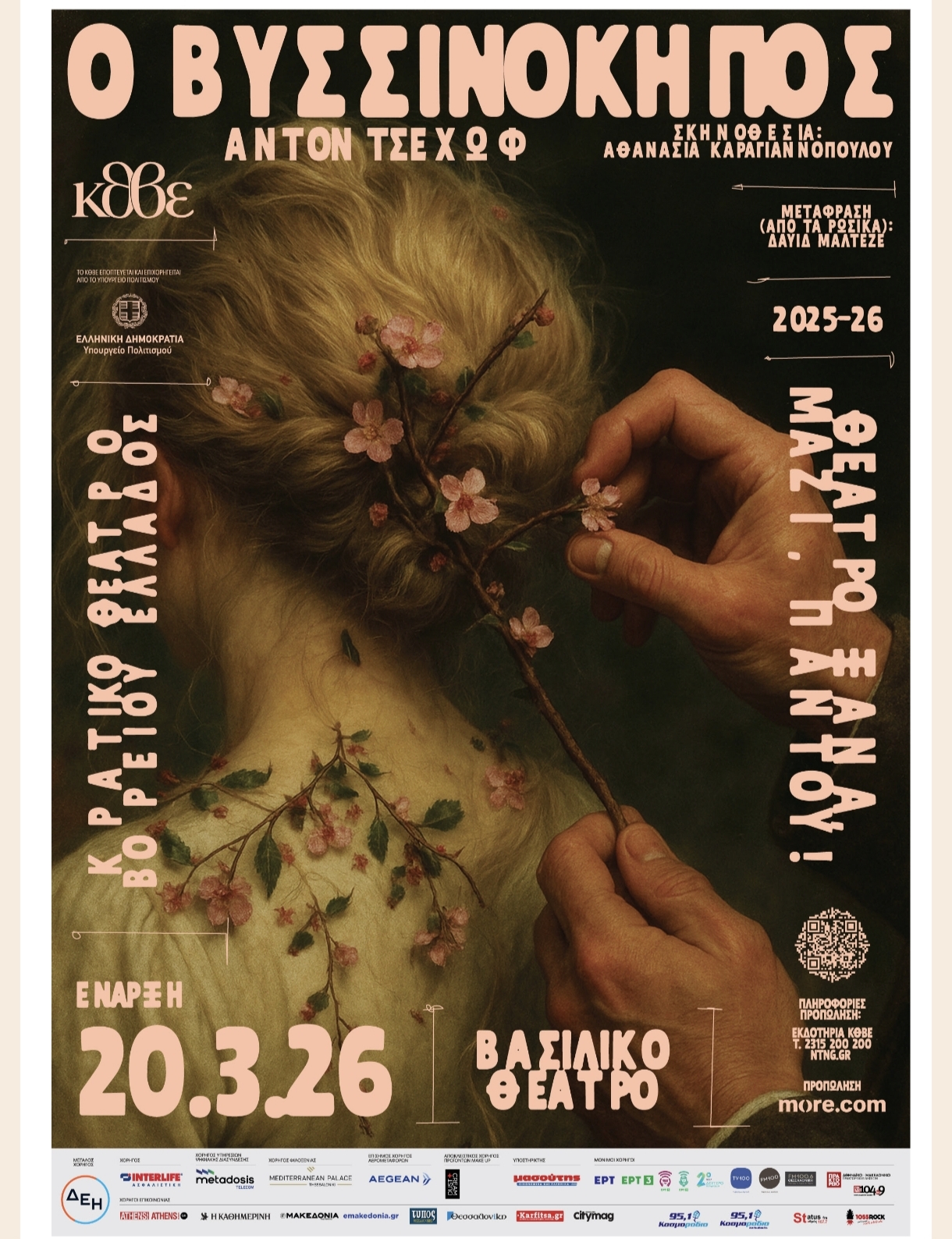 «O Βυσσινόκηπος» του Αντόν Τσέχωφ– ΝΕΑ ΠΑΡΑΓΩΓΗ Μετάφραση (από τα ρωσικά): Δαυίδ Μαλτέζε Σκηνοθεσία-Δραματουργική επεξεργασία-Μουσική επιμέλεια: Αθανασία Καραγιαννοπούλου ΒΑΣΙΛΙΚΟ ΘΕΑΤΡΟ Πρεμιέρα: