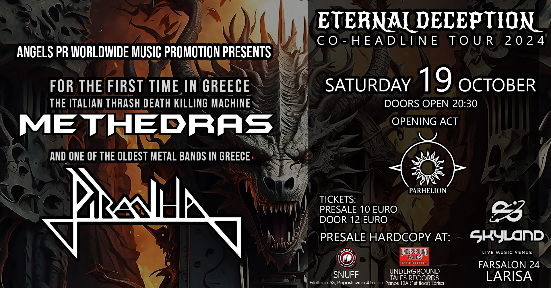 ΜΕΤΗEDRAS / PIRANHA / PARHELION @ “ETERNAL DECEPTION” TOUR 2024 – Σάββατο 19 Οκτωβρίου @ Skyland, ΛΑΡΙΣΑ Για πρώτη φορά έρχεται στην